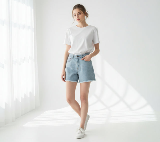 Short de jean desflecado claro - xs está agotado y se enviará tan pronto como vuelva a estar disponible.